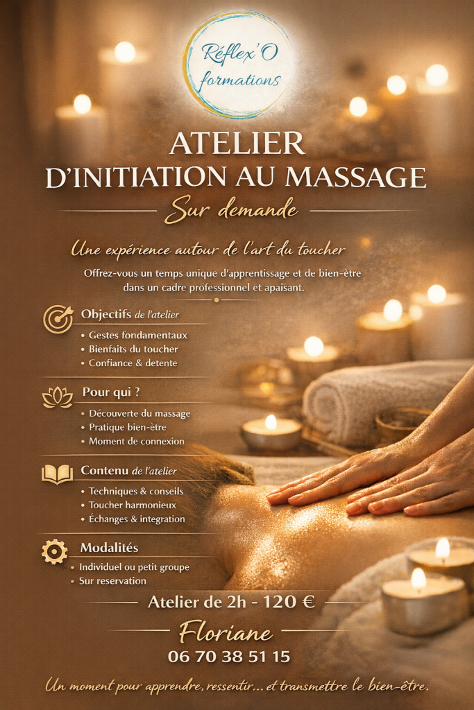 Je remet en marche mes ateliers, apprendre à se masser dans le cercle familial, s’occuper de soi en allant plus loin dans ses connaissances et techniques… le tout sur fond de douceur, de bienveillance et de joie.